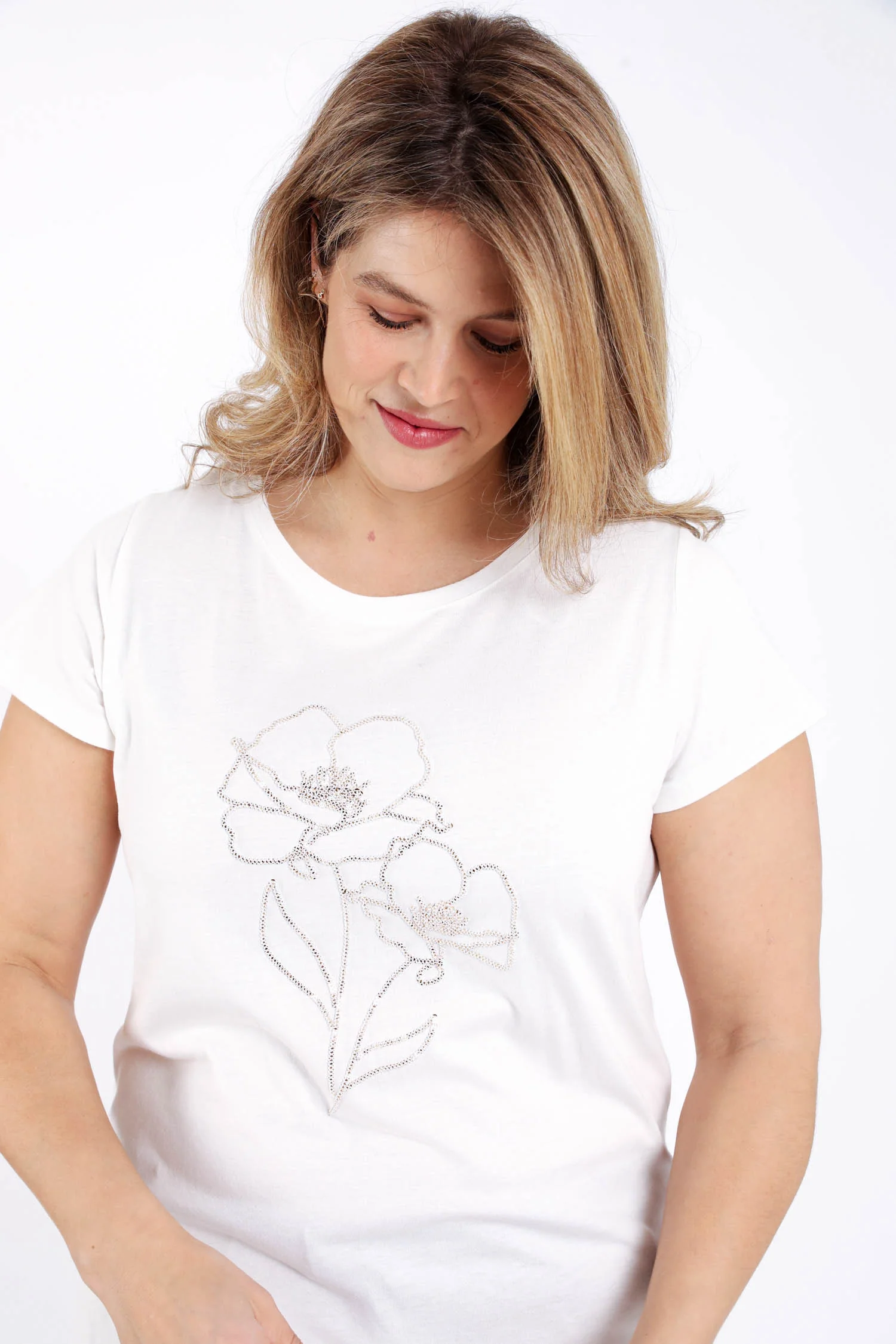 T-shirt uni avec fleurs en sequins